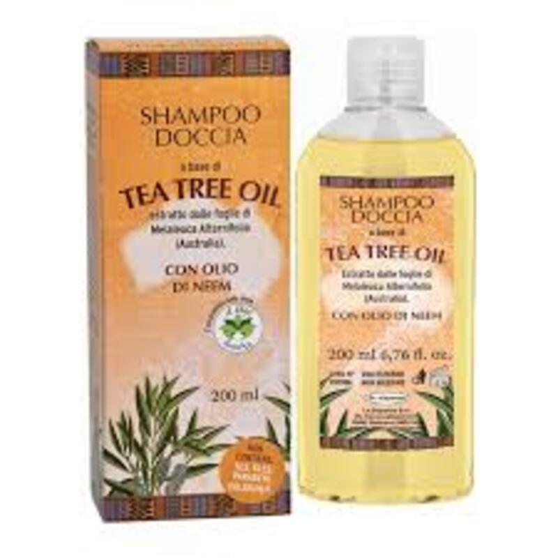 Shampoo Doccia Tea tree Neem: Il Bagno doccia contiene alta percentuale di Tea Tree e olio di Neem ed è privo di sostanze dermo-irritanti. La confezione è in bottiglia da 200 ml